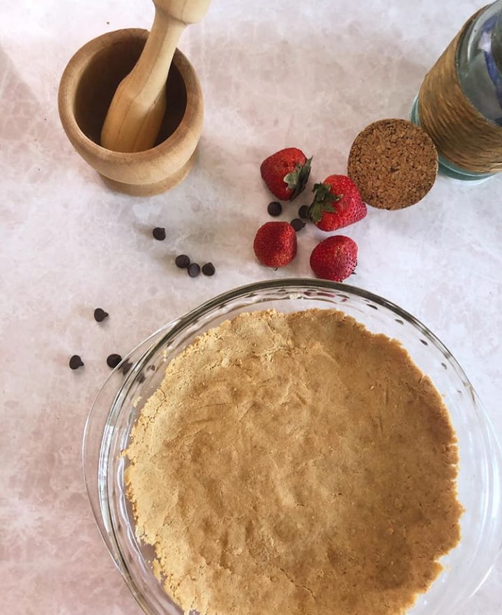 4. Aplasta con las manos esta masa al molde, hasta cubrirlo por completo