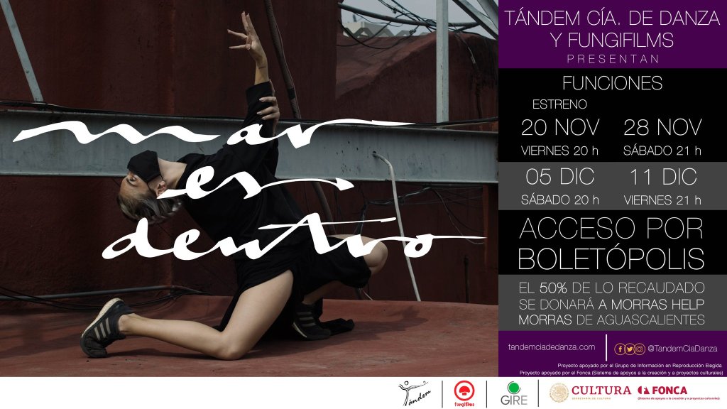 La obra que será transmitida por streaming en la plataforma de Boletópolis el 20 y 28 de noviembre, así como el 5 y 11 de diciembre, une los lenguajes de la danza, la música, la imagen y la poesía. Se exhibirá en su primera temporada en funciones especiales el sábado 28 de noviembre a las 21 horas; sábado 5 de diciembre a las 20 horas, y el viernes 11 de diciembre, a las 21 horas.