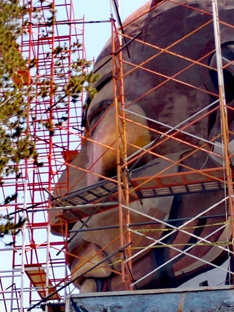 La cabeza mide 13 m de altura por 9 m de ancho y con 6 toneladas de peso, toma su forma basándose en láminas de acero, varilla y alambrón, fue edificada con grandes placas metálicas que el escultor ensambló y dotó de una suave y discreta policromía. La base donde se colocó tiene una altura de 12.38 m 15.95 m de ancho y 6 m de fondo. El vértice de un foro de concreto con un ancho de 16 m abierto en dos columnas laterales, mismas que tienen 3.5 m de ancho.