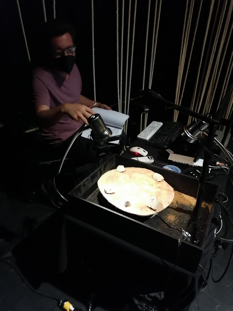 «Estoy trabajando con un videoartista austriaco, él ha trabajado en Europa, que hace un video en vivo, lo cual tiene una dificultad, es muy riesgoso, porque pueden pasar muchas cosas: el software puede tener una fallar de repente… mil cosas. Con todo esto del COVID el problema es que no nos dieron espacios para poder ensayar como normalmente lo haces, ocho horas, diez horas, durante dos meses, y con el confinamiento solamente puedes ensayar cuatro horas. Además, no hay técnicos por el COVID porque no pueden entrar, se pueden enfermar».