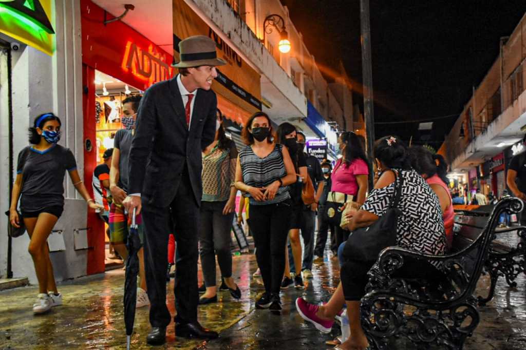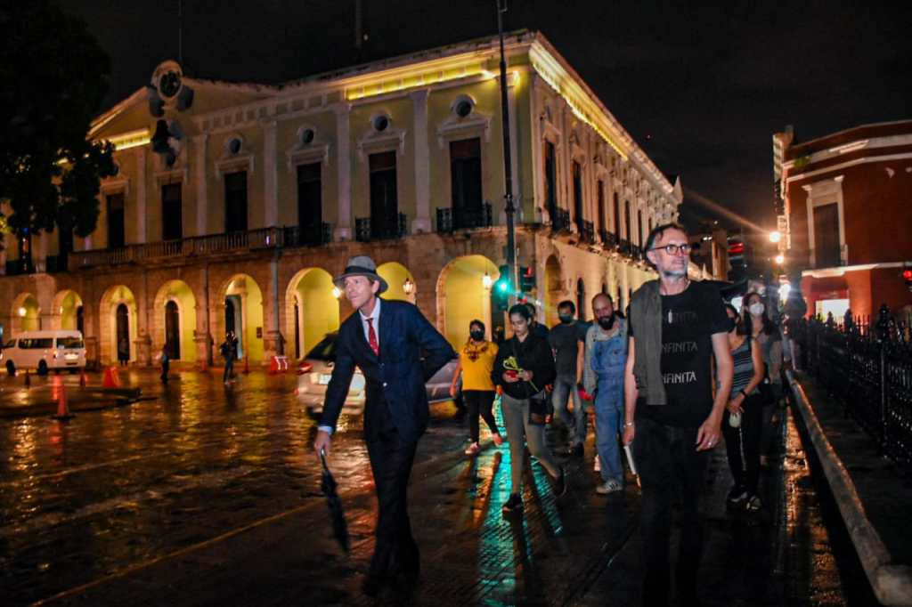 En Mérida se programaron tres recorridos, el primero fue el miércoles 17 de noviembre y en palabras de los artistas, les encantó la experiencia, pues luego de 150 representaciones realizadas en diferentes países donde la han llevado, fue la primera ocasión que les tocó realizar el recorrido de noche, ante un breve retraso que ocasionó la lluvia que bañó a la ciudad previamente, y por el hecho de que los paseos se realizan cuando el atardecer despide del día. “Hacerlo de noche tiene su encanto”, compartió con una sonrisa Esteban.