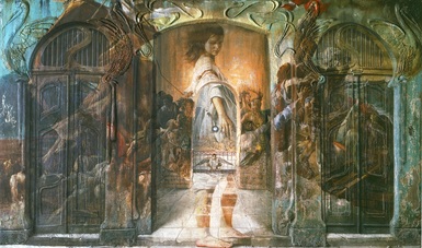 Distribuida en 1,103 m², en siete salas del Colegio de San Ildefonso, las obras de Rafael Cauduro conviven con la arquitectura barroca novohispana de este recinto que aún conserva la impronta del muralismo mexicano.