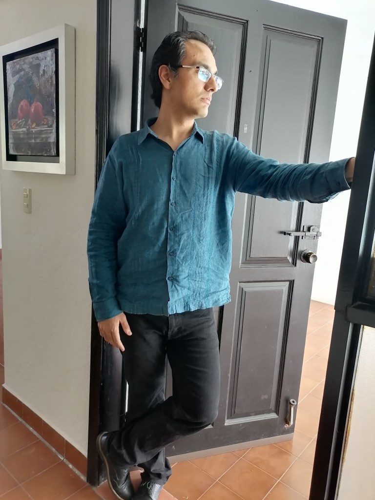 En general, mi obra tiene como elemento medular la figura humana; es una pintura figurativa. En el caso de esta exposición en particular, la mayoría de los cuadros son figuras individuales; un solo personaje que dialoga consigo mismo. Son personajes muy interiorizantes, están muy ensimismados. Y el diálogo, refiriéndonos al título, con el espectador viene a partir del cruce de miradas entre el personaje y el espectador porque, en muchas de las obras, los personajes están viendo hacia el frente o tres cuartos, entonces, te invitan a ser parte de la obra.