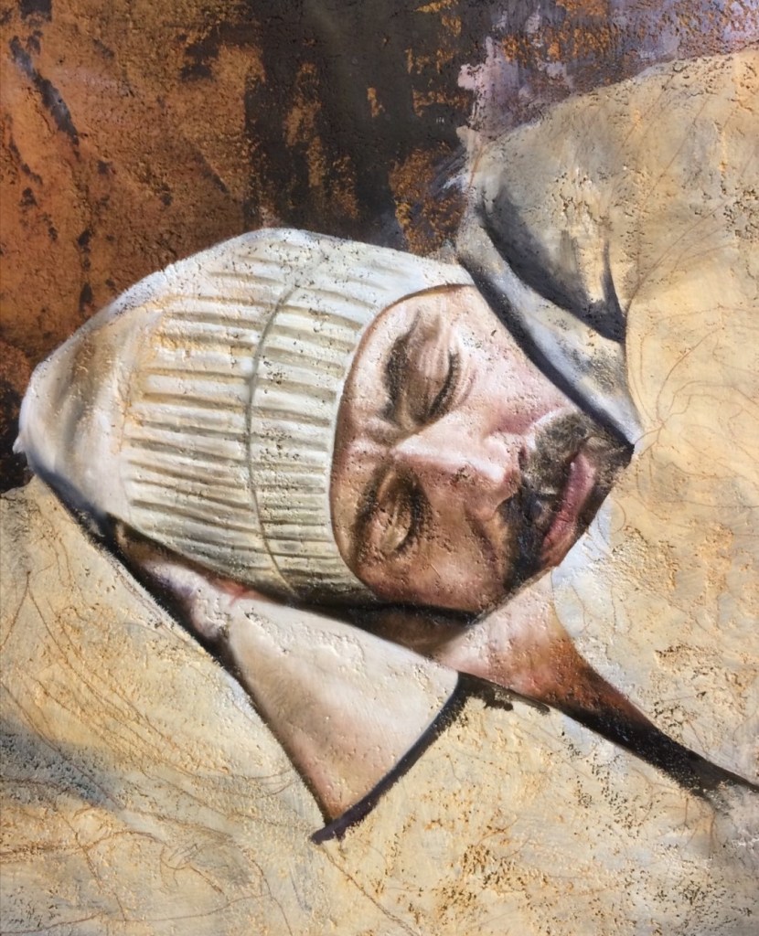 Entonces, justamente porque yo no quería eso, yo quería seguir conservando mi lenguaje, me tardé en encontrar una manera distinta de manejar todo esto, por esa cercanía, porque nunca ha sido mi interés hacer lo que él (Cauduro) hace, los cómos y las maneras son muy diferentes. Pero haber estado con él -lo cual agradezco infinitamente… Es más, tenemos una amistad muy padre- me abrió el panorama de que no todo tenía que quedarse en la manera académica de hacer la pintura: solamente lienzos en tela, el óleo embarrado sobre una tela, sino que se podían incorporar otras cosas. Y eso a mi me empezó a llamar mucho la atención y lo empecé a meter en mi lenguaje, en lo que, como comenté, me tardé mucho tiempo porque el proyecto, la época con el maestro Cauduro, culminó en el 2010, y yo empecé a incorporar otros materiales hasta, aproximadamente, el 2016. Justamente porque quería encontrar mi lenguaje.