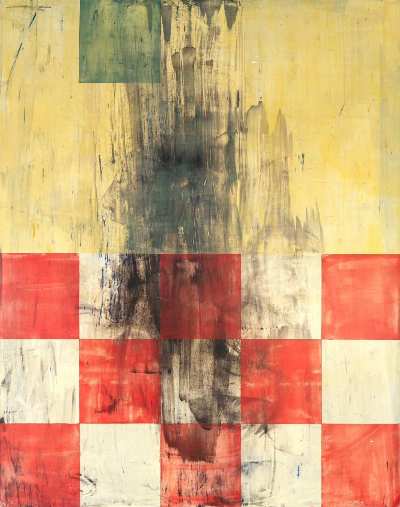 Materia, madera y damas: 1980-2000, el segundo núcleo, exhibe la primera etapa creativa del artista, donde el paisaje urbano se entrelaza con la construcción artificial alterada por la influencia de la naturaleza, la lluvia, el tiempo y la intervención humana. Después del terremoto de 1985, el artista transformó su lenguaje plástico para conceptualizarlo en segmentos geométricos cuadriculados que remiten a baldosas o a tableros de juegos de mesa.