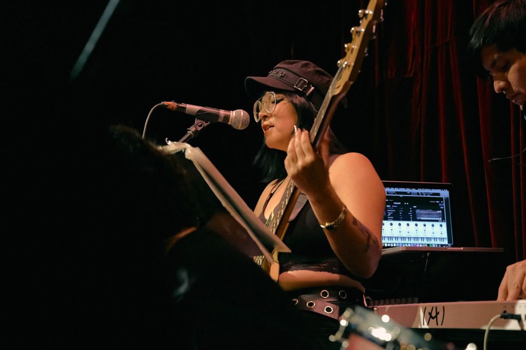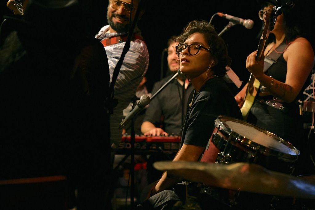 Cris Cat, en la guitarra y coros, fue el aliento punk del conjunto. Sof de León, al bajo, aportó tierra y profundidad. Andrea Dubois, con una voz que corta como luz blanca, sostuvo algunos de los momentos más íntimos. Alonso Coriambo, desde las percusiones y la programación, tejió un pulso tribal y urbano a la vez. Mariana Sánchez, al cajón y los coros, fue precisión y ternura. Y Ulises Santiago, en los sintetizadores, dibujó atmósferas que olían a sci-fi chicano y nostalgia digital.