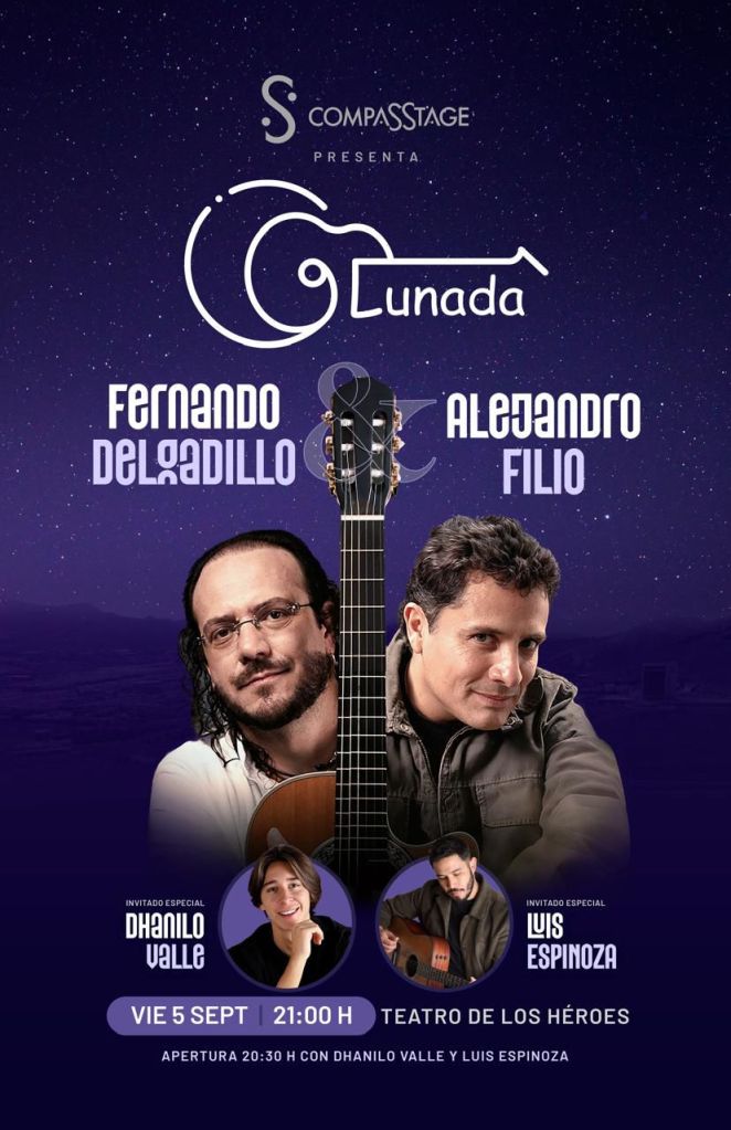 El próximo viernes 5 de septiembre, el Teatro de los Héroes se vestirá de música y palabra con la llegada de Lunada, un encuentro que reunirá sobre el mismo escenario a dos de los referentes más importantes de la canción de autor en el mundo hispanohablante: Fernando Delgadillo y Alejandro Filio. La cita, presentada por Compass Stage, no será un simple recital: será un cruce generacional donde la memoria y la renovación se sentarán juntas a contemplar la misma luna.
